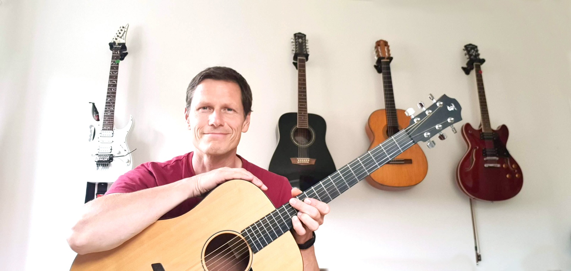 Pokud začínáte od nuly, naučíme se nejdřív pár akordů, zahrajem první písně podle vašeho vkusu a pak už to můžete hoblovat, co to jde. Je jedno, jestli to budou "táborákovky" nebo Nirvana. Hlavně ať vás to baví. Až zvládnete tenhle základ, můžem pokračovat složitějším doprovodem a akordy, vybrnkáváním, hraním sól, orientací na hmatníku, základy improvizace a teoretickým backgroundem. Hrajeme na akustiky i elektriky.